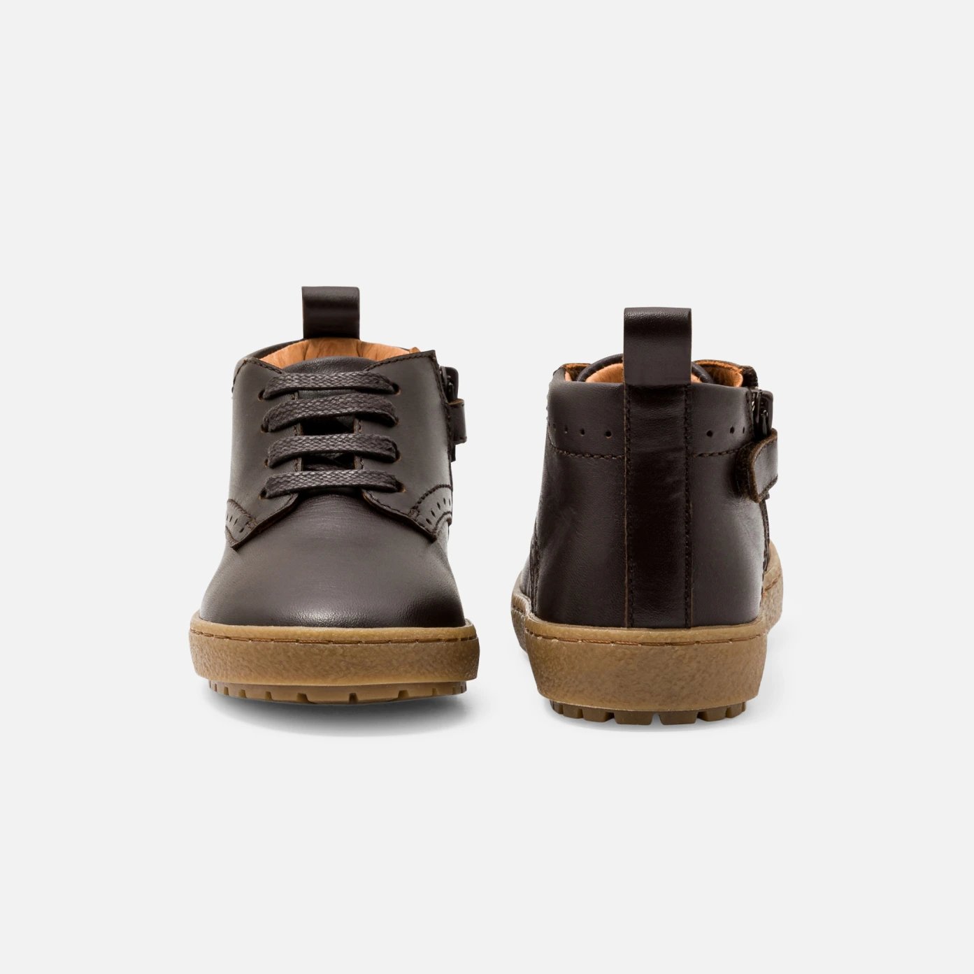 Jacadi navrhl dokonalé městské botičky pro tento podzim. Tyto kožené kojenecké chlapecké kotníkové boty, navržené jako elegantní tenisky, mají kontrastní podrážku a jsou krásně perforované. Noste je s džíny nebo kostkovanými kalhotami a košilí pro městský vzhled, budou doprovázet jeho první kroky ve stylu. • Vyrobeno v Portugalsku • Hladká kůže • Kožená podšívka • Polstrovaný límec a jazyk • Perforované detaily • Zapínání na zip • Tento model má běžnou velikost