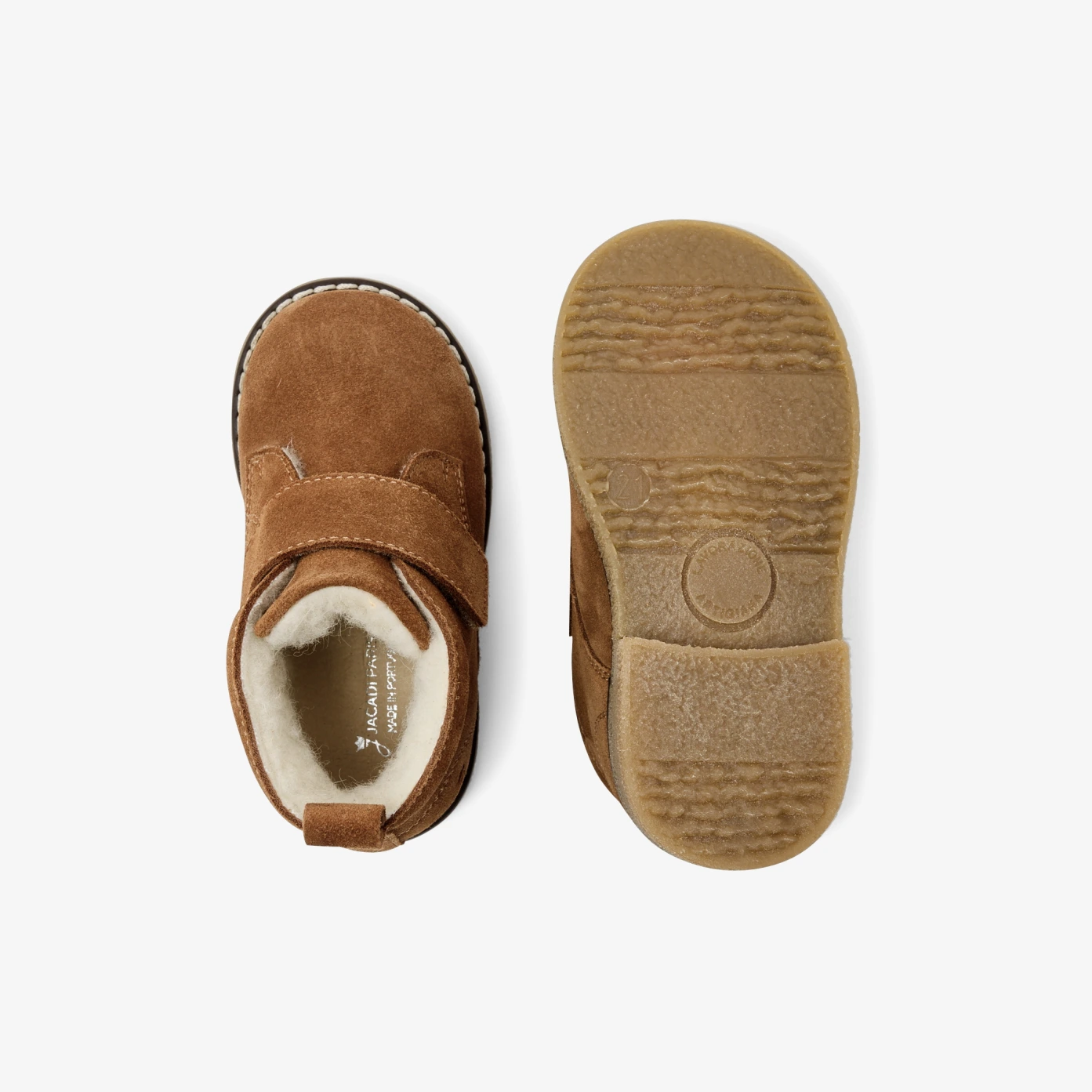 Jacadi vkládá své odborné znalosti v oblasti výroby obuvi do služeb nejmenších a nabízí modely navržené tak, aby doprovázely jejich první krůčky, jako jsou tyto dětské dupačky. Dostupné ve štípenkové kůži a podšité pravou vlnou na zimu, přebírají nadčasovou řadu pouštních bot pro elegantní ležérní vzhled. Tyto zimní boty pro miminka, která začínají stát, se snadno nazouvají díky širokému otvoru a doprovází vaše děťátko při všech jeho objevování.- Vyrobeno v Portugalsku- Kožená krusta- Podšívka z pravé vlny- Protiskluzová podrážka- Pásek na suchý zip- Tento model je o něco menší než obvyklá velikost.