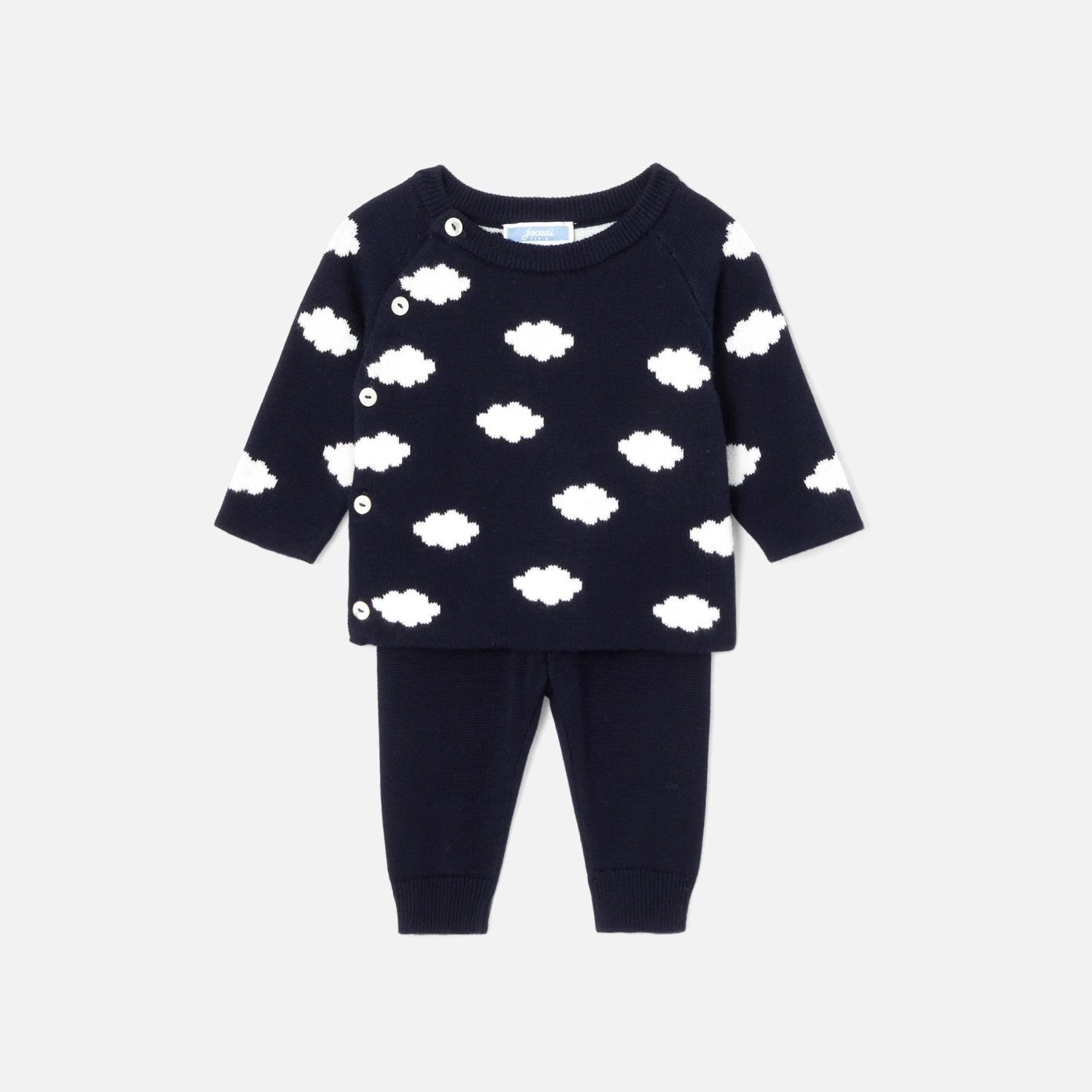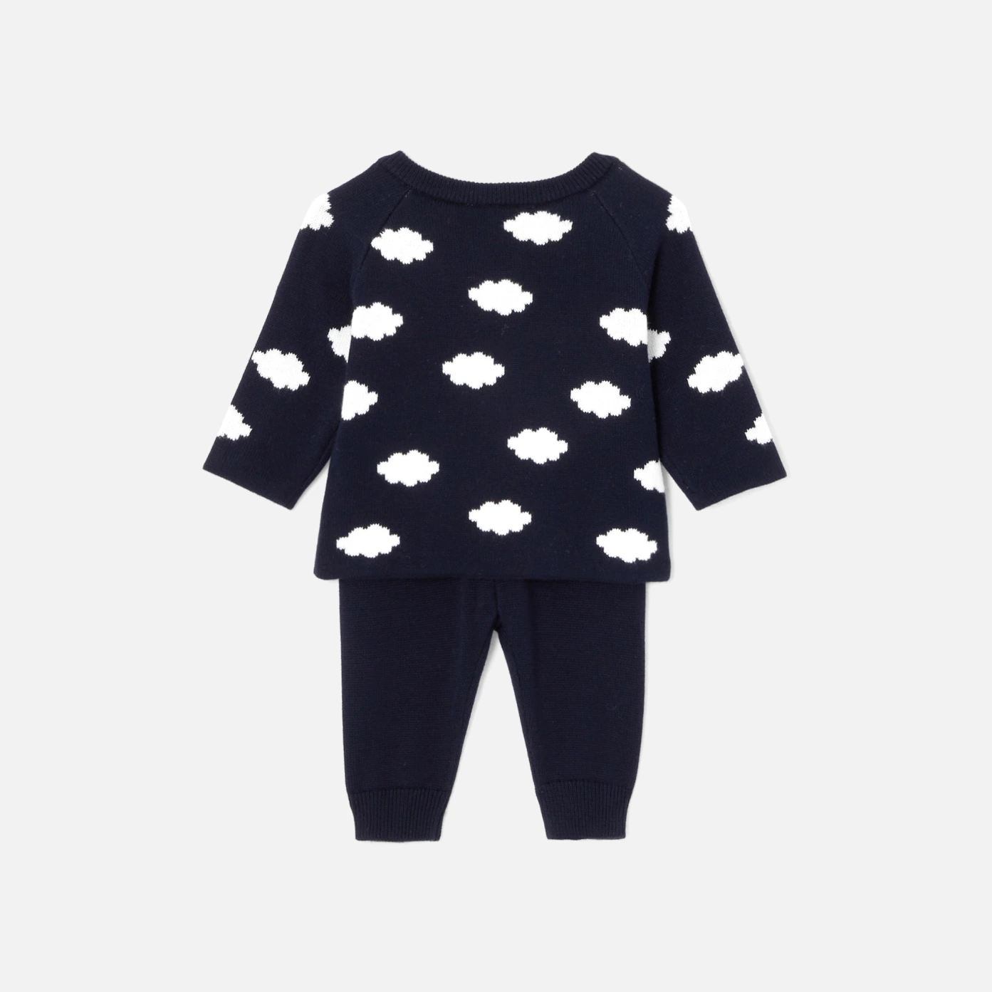 Tato dětská soupravička, která je skvělým tipem na dárek i nepostradatelným kouskem v úvodní výbavičce, je ušita z organické bavlny. Svetřík, který má na straně zapínání na perleťové knoflíky, je krásně měkký a teplý. Kalhoty pak mají pružný pas.