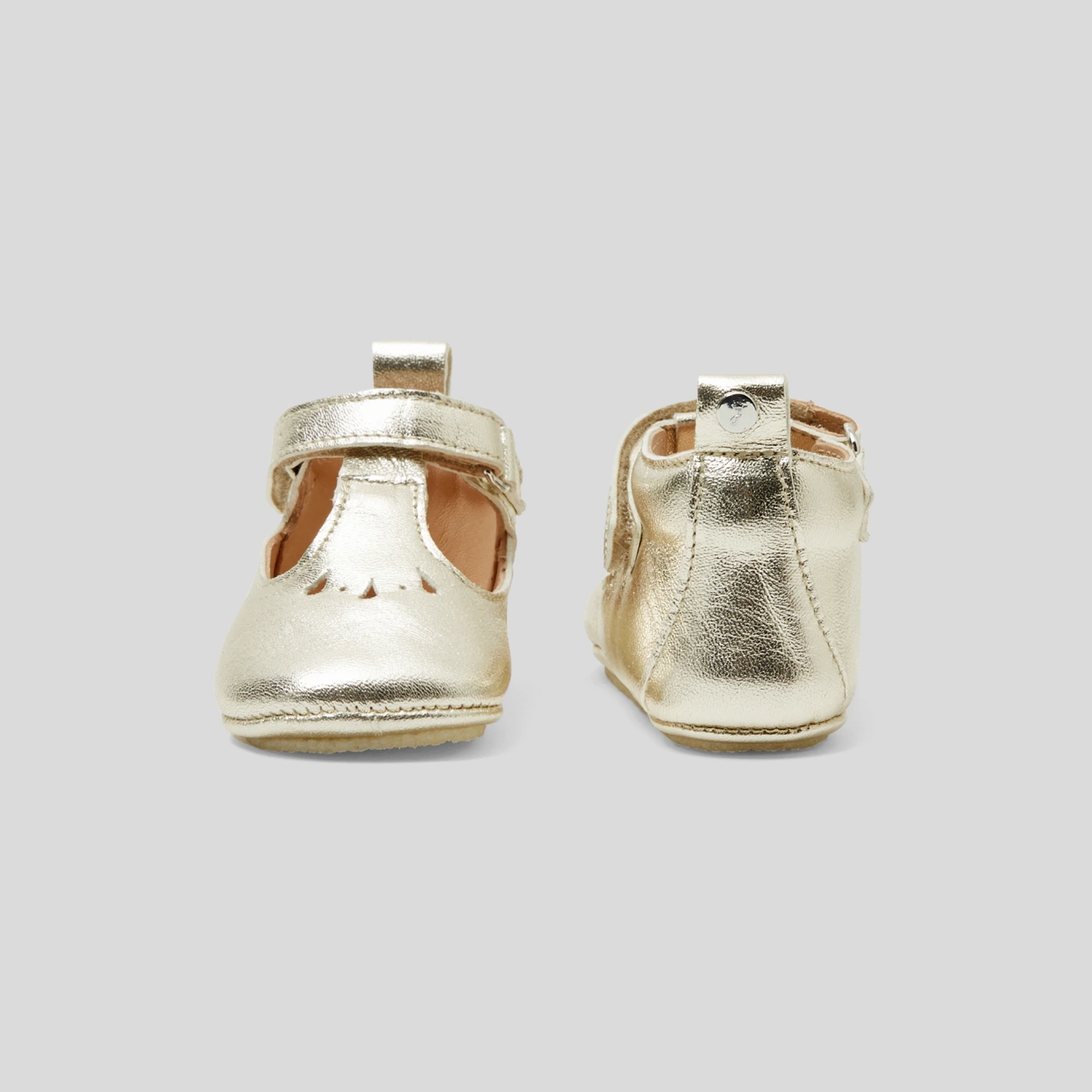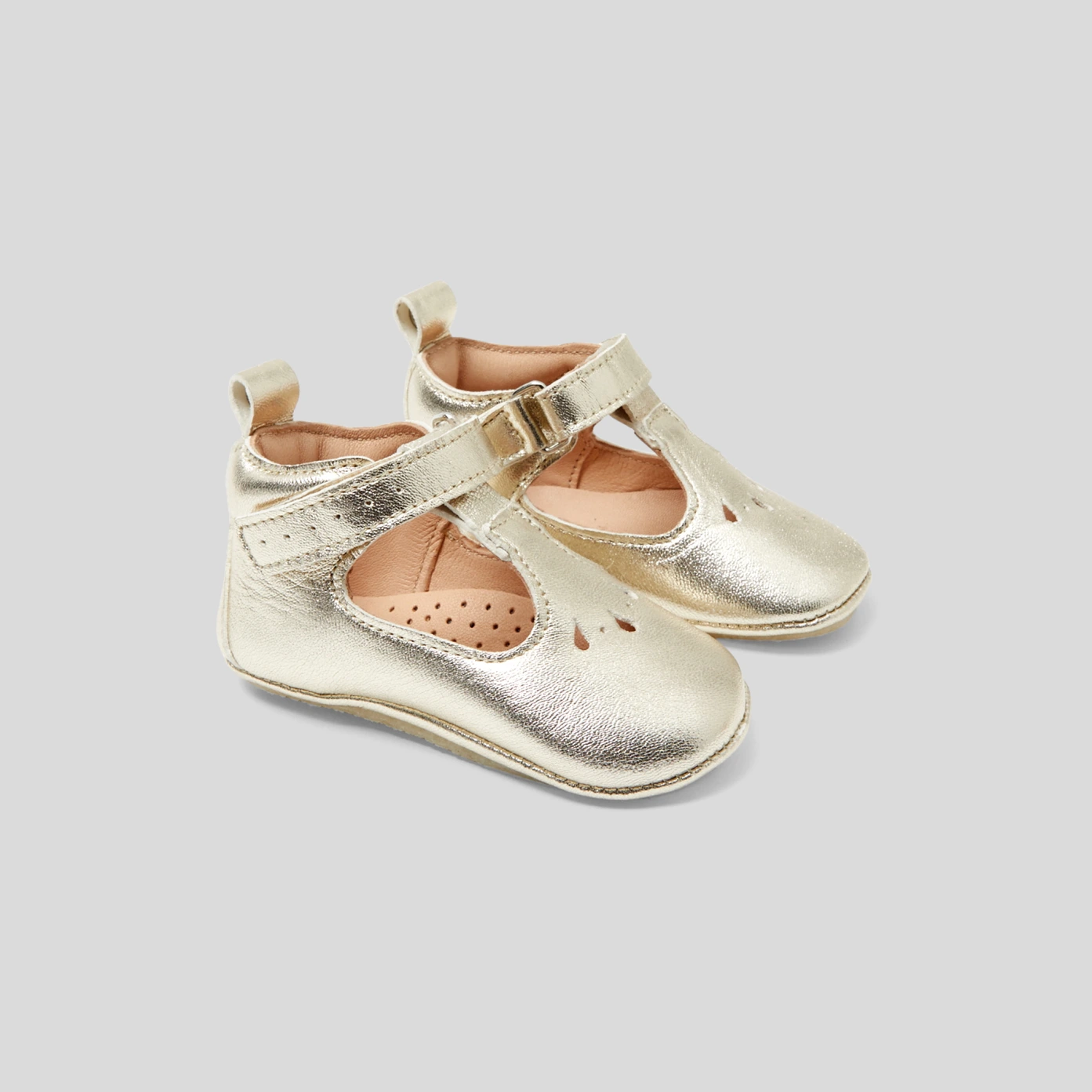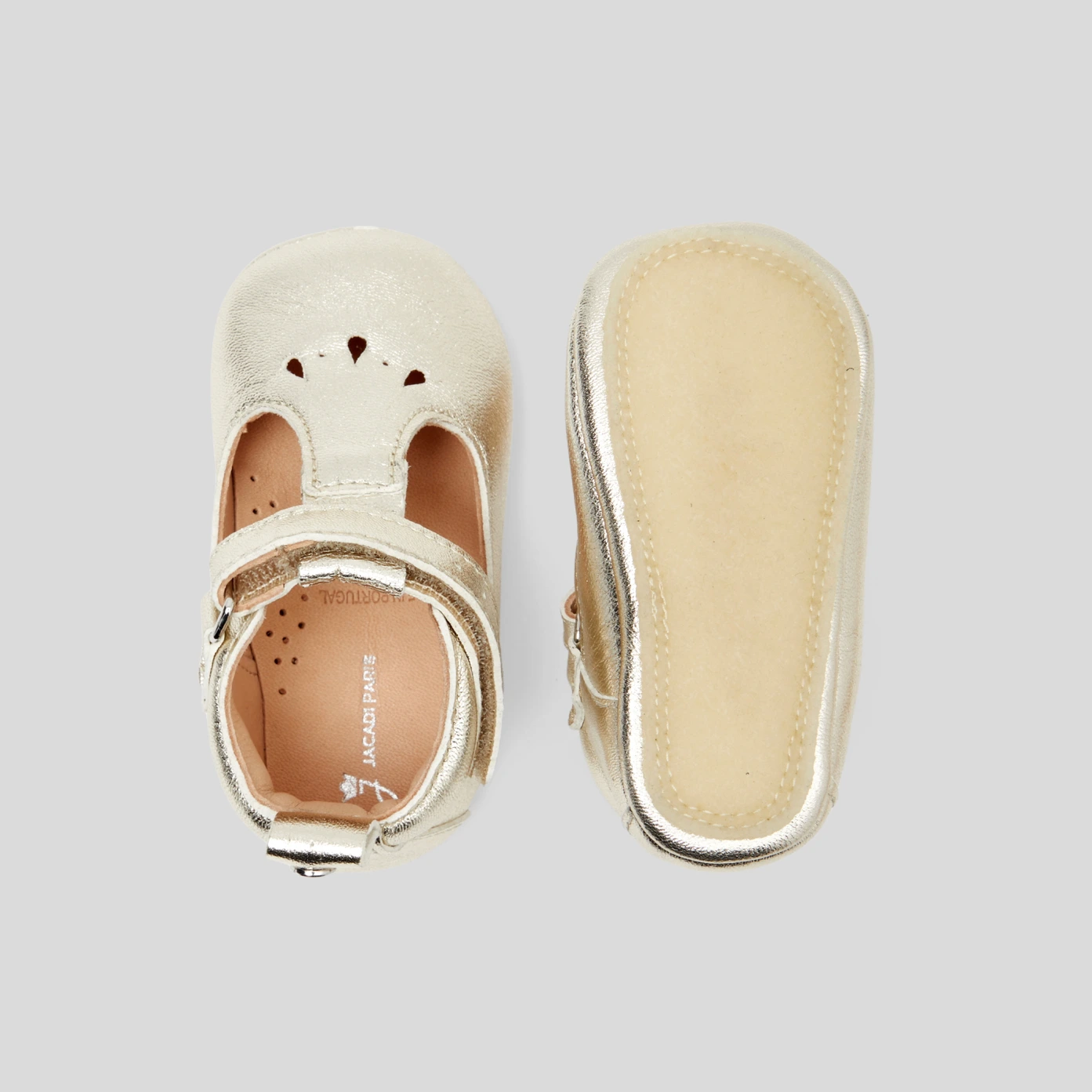 Holčičkové dupačky, pružnější než sandály a vhodnější pro miminka, odhalují jejich šik. Tyto hybridní nazouváky s protiskluzovou podrážkou, dostupné v hladké nebo zlaté kůži, jsou perfektním zakončením každodenního outfitu.- Vyrobeno v Portugalsku- Hladká nebo zlatá kůže- Perforace na nártu- Pásek na suchý zip pro snadné nazouvání- Protiskluzové podrážka- Tento model normálně sedí