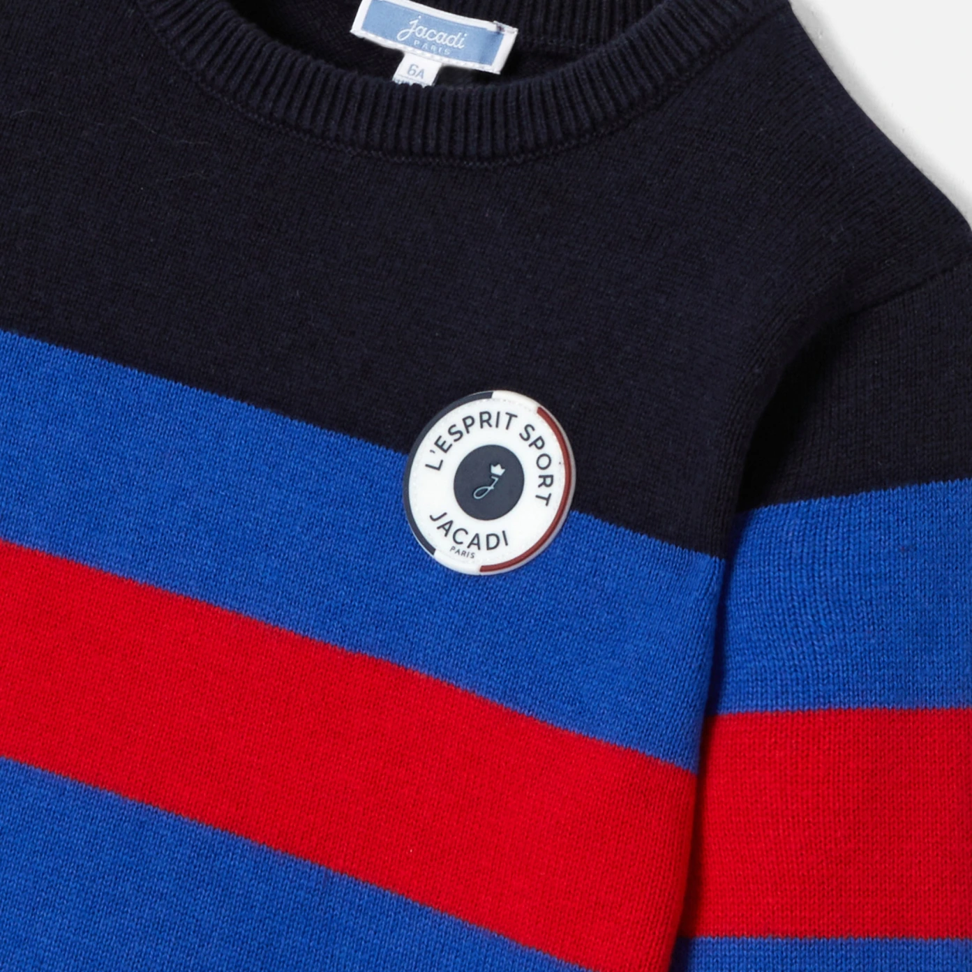 Tento chlapecký svetřík zdobí široké pruhy ve vícebarevném stylu. Jde o základní kousek každého šatníku v udržitelném provedení z organické bavlny a ekologické vlny. Oblíbený bude zejména pro městské nošení. Hezky bude ladit s ohrnutými kalhotami a teniskami pro okouzlující školní styl.- Organická bavlna a ekologická vlna- Vícebarevné pruhy- Logo Jacadi na hrudi
