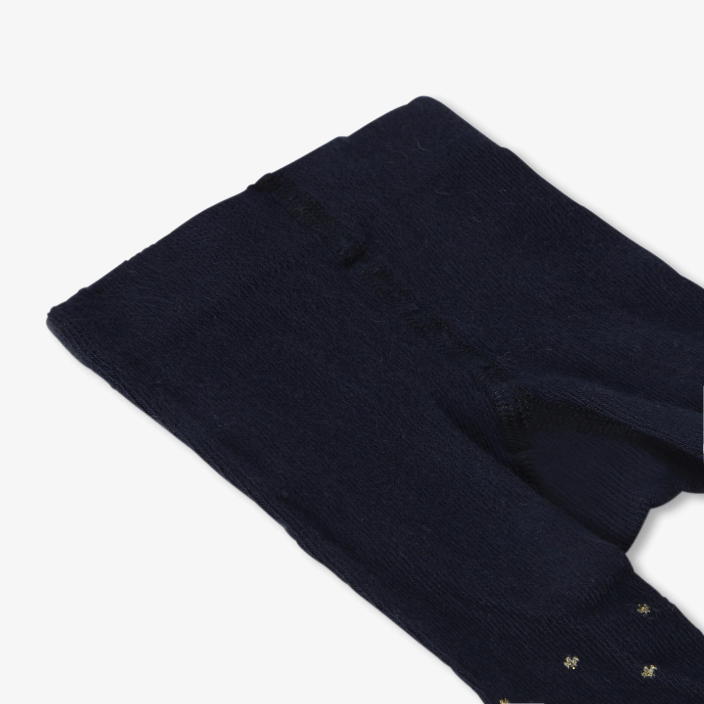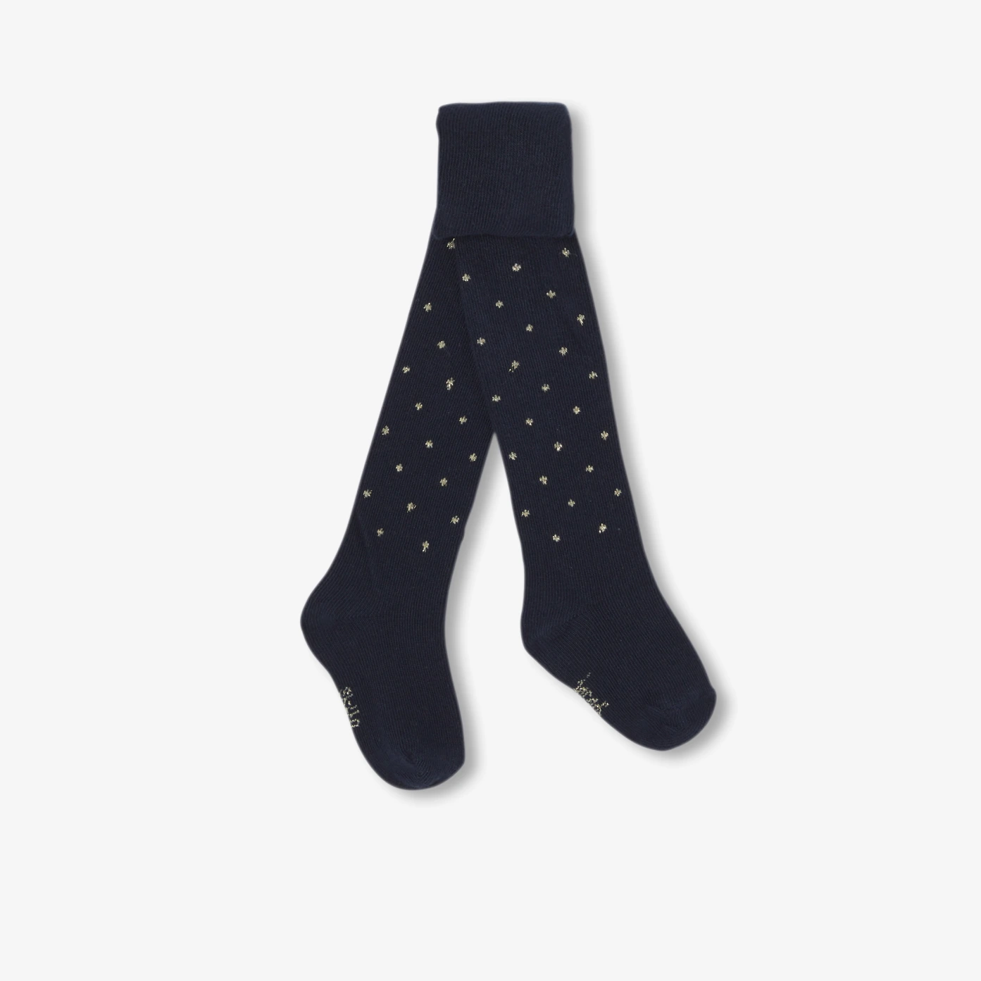 Animated by tiny golden polka dots, these baby girl tights will add a subtle touch of sparkle to everyday silhouettes and holiday outfits. Soft and easy to slip on, add them rigth away into baby's wardrobe. - Soft, stretchy tights - Gold polka dot print - Elasticated waistband - Easy to slip on