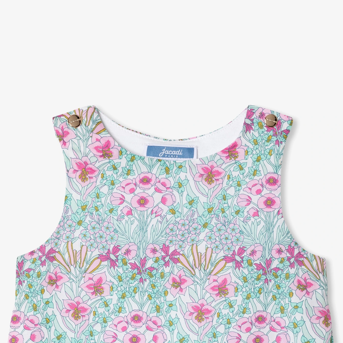 This baby girl jumpsuit in Liberty fabric transports you into a romantic, colourful world. Minimalist in cut and easy to put on with snaps at shoulders, sides and crotch, its knit lining brings comfort and softness. Paired with a pink bodysuit and cardigan for nursery and everyday wear, it will follow baby through all his discoveries.- Baby girl jumpsuit in cotton- Knit lining- Front, side and crotch press stud opening- Liberty Mountain Primrose fabric in exclusive Jacadi colouring- Great birth gift idea to offer or to treat yourself.