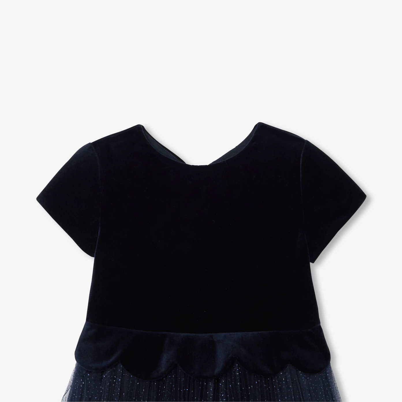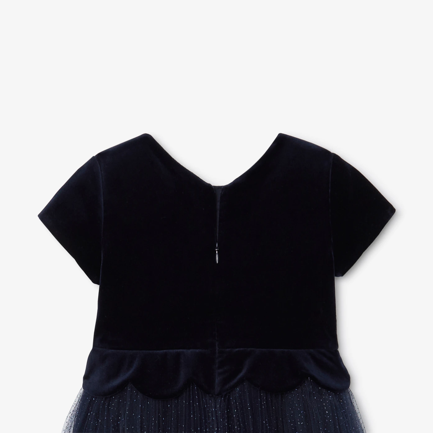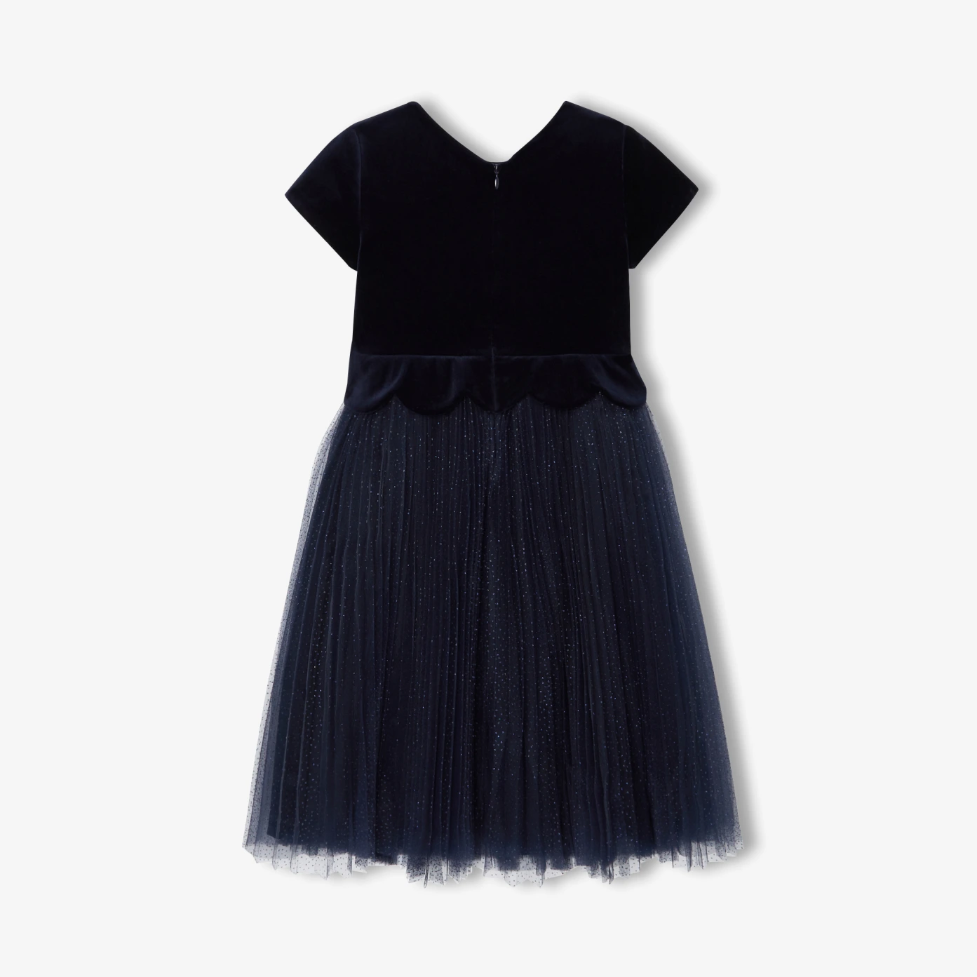Rediscover all the elegance of Jacadi with this girl dress. Designed for special occasions, the top in smooth velvet is beautifully scalloped and the base in pleated tulle is delicately sequined, embellishing this charming piece. Perfect for the festive season, team it with patent Mar Janes and a cardigan. - Smooth velvet top - Scalloped waist- Sequined pleated tulle base - Cotton lining - Invisible zip opening at back.