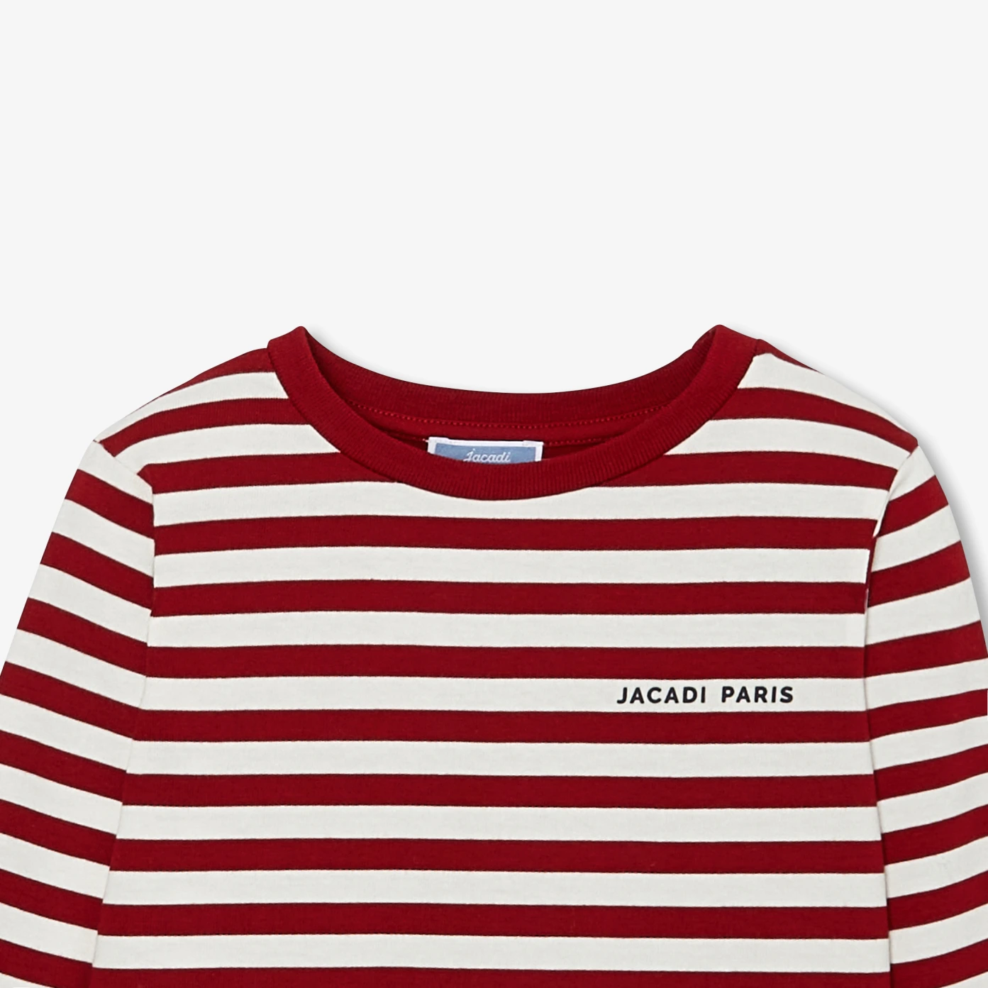 Timeless and iconic, this boy Breton tee is available in thick cotton jersey with a brushed interior for autumn. An easy-to-match classic, children will wear it with rolled-up jeans and runners for a look with Parisian charm.- Boy sailor jacket in thick organic cotton jersey- Scratched interior- Contrasting round neck- Jacadi print on chest